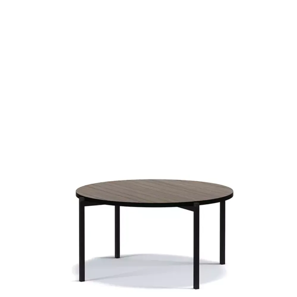 Okrągły stolik kawowy z kolekcji ETA ma blat w kolorze captains deck, wykonany z wysokiej jakości płyty laminowanej grubości 32 mm. Ława do salonu osadzona jest na czarnych metalowych nogach wykonanych z profilu o grubości 20 mm. Stolik jest lekki, więc bez problemu go przestawisz, dzięki czemu świetnie sprawdzi się w małym mieszkaniu. Stelaż delikatnie nachodzi na blat co prezentuje się ciekawie i nowocześnie.