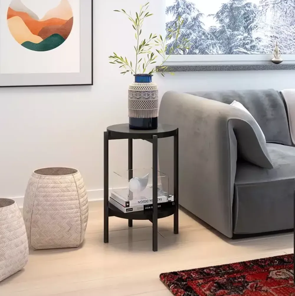 - Kwietnik ? Stolik kawowy ? Konsola do przedpokoju ? Zdecyduj, gdzie wstawisz ten nowoczesny stolik. Okrągły blat i półka na dole dadzą miejsce na kwiaty lub ozdoby.