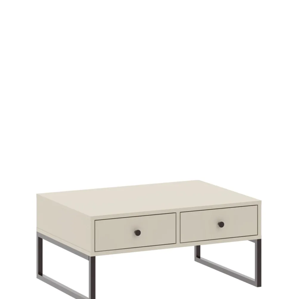 - Stolik kawowy LAMORI w kolorze kaszmir z 2 szufladami i czarnymi metalowymi detalami. Trwała płyta laminowana, nowoczesny design i kompaktowe wymiary. Stylowe przechowywanie i elegancja w Twoim salonie.