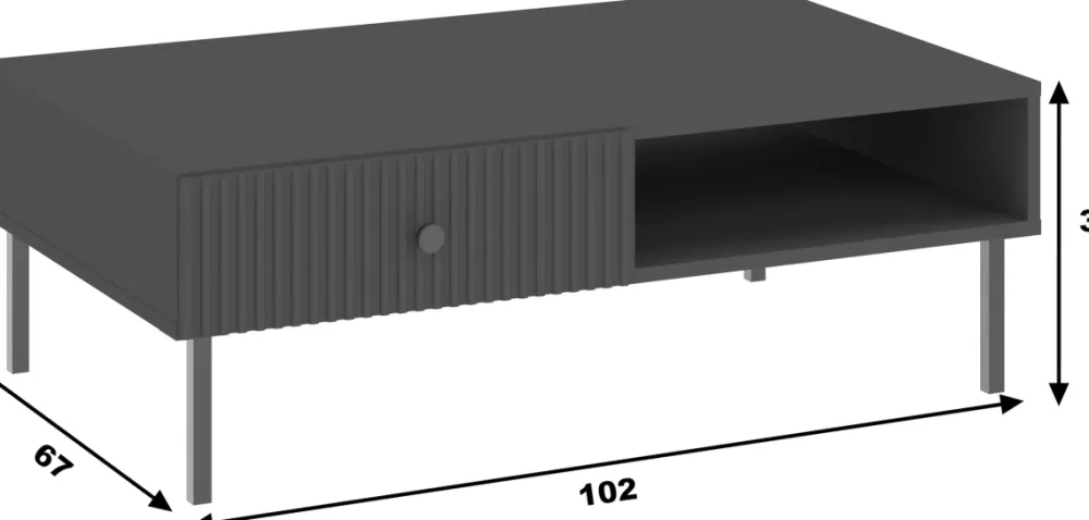 VALTEO to stolik kawowy do salonu, który doskonale odnajduje się zarówno w przestronnych wnętrzach, jak i w przytulnych sypialniach. Jego kompaktowe wymiary czynią go doskonałym wyborem do mniejszych przestrzeni, a jednocześnie oferują praktyczne rozwiązania do przechowywania.