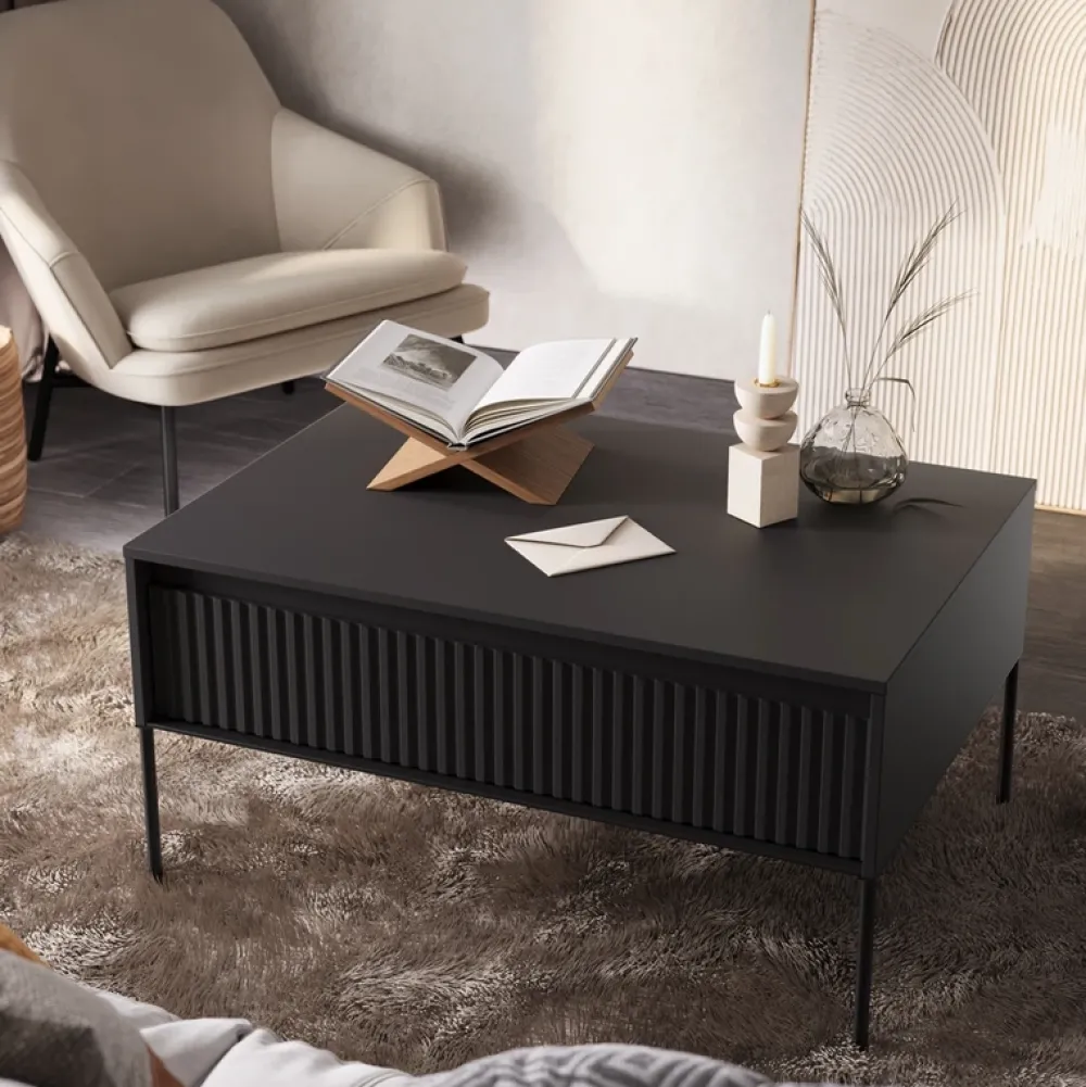 Czarny stolik kawowy TREND łączy w sobie minimalistyczny design z funkcjonalnością, stając się nieodłącznym elementem każdego stylowego i nowoczesnego domu.