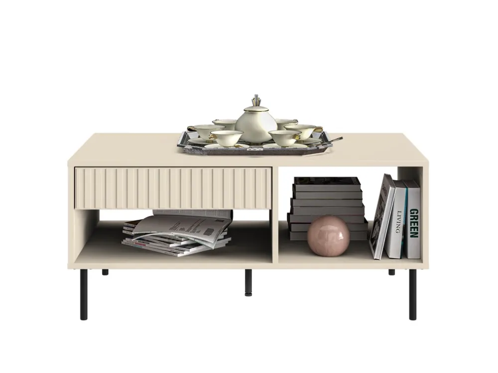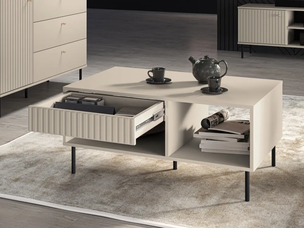 - Odkryj elegancję i funkcjonalność w jednym – nasz stolik kawowy SOPHIE do salonu. Został wykonany z płyty laminowanej oraz płyty MDF. Posiada jedną przestronną szufladę poruszającą się na prowadnicach kulkowych.