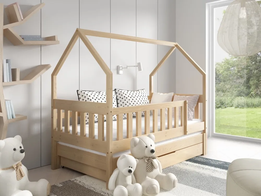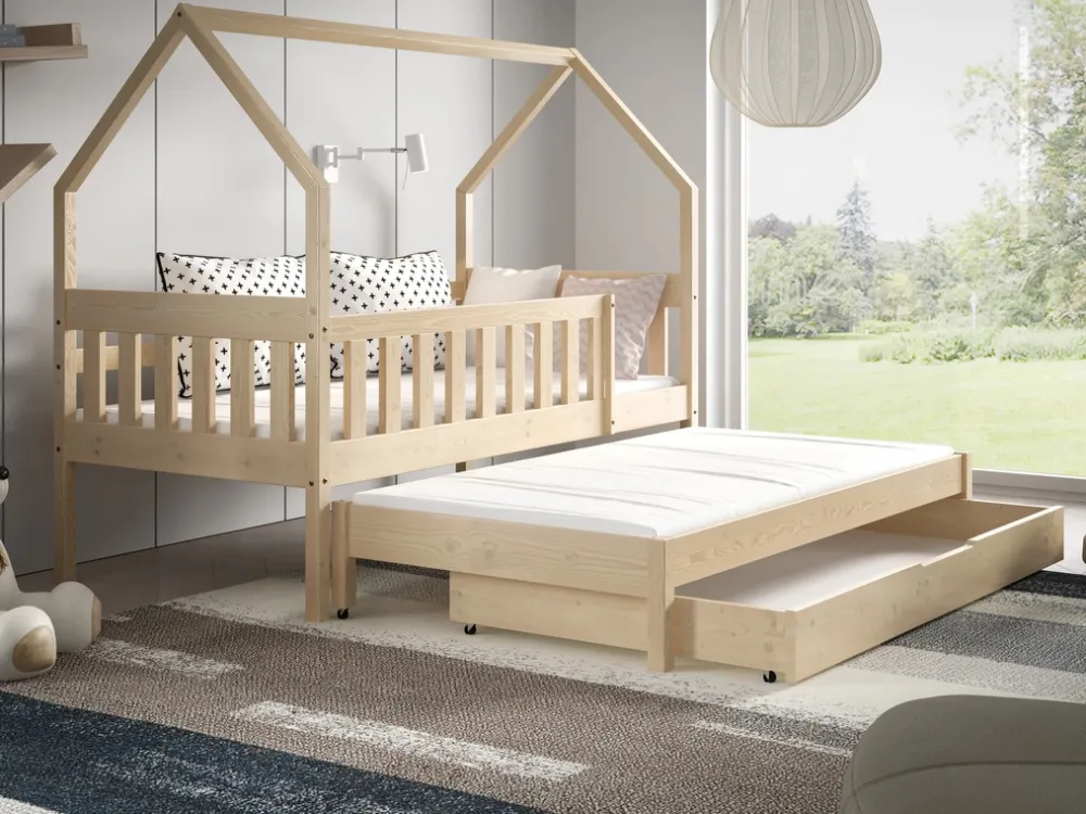 - Przedstawiamy rozsuwane łóżko-domek MELANIA idealne do pokoju dziecięcego. Wyposażona w szufladę na kółkach oraz barierkę ochronną. Posiada dwie powierzchnie spania: 80×160 cm i 80×150 cm. Występuję w wybarwieniu sosny naturalnej.
