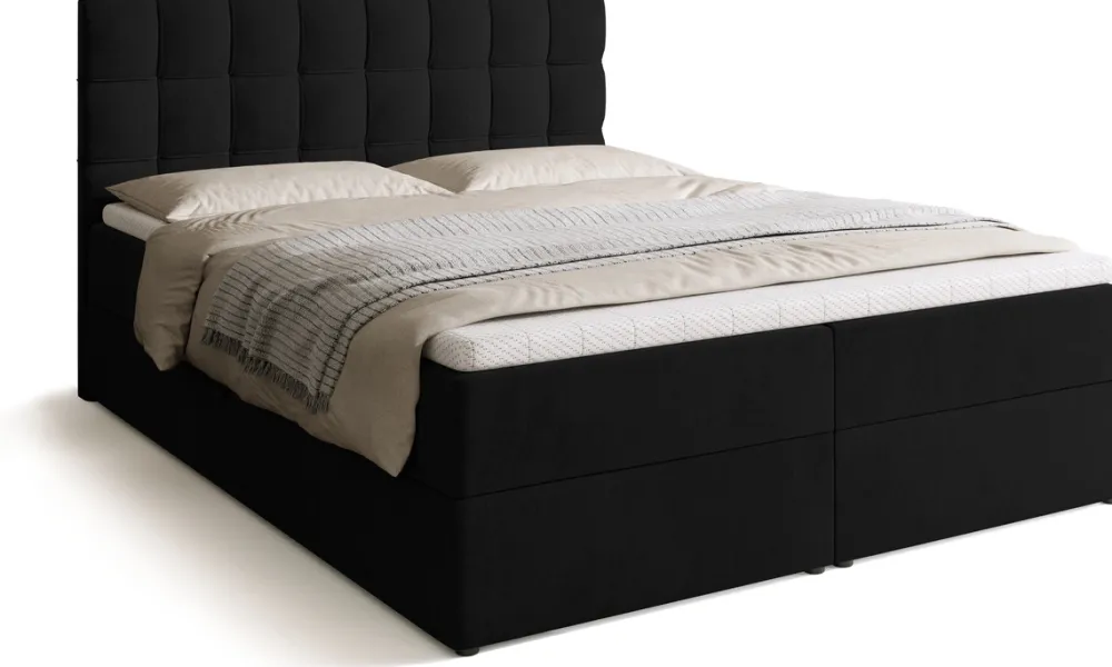 Łóżko kontynentalne do sypialni posiada dwa pojemniki na pościel, które pozwalają na przechowanie pościeli i nie tylko. Automat sprężynowy wspomaga otwieranie pojemnika, co czyni dostęp do jego zawartości prostym i komfortowym.