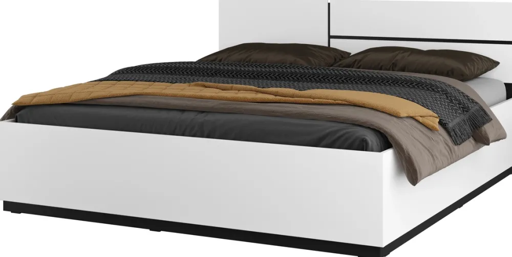 - Łóżko do sypialni CROSS 180×200 cm, bez stelaża i materaca – idealne do indywidualnej aranżacji. Obrzeża wykończone trwałą okleiną ABS zapewniają elegancki wygląd i odporność na uszkodzenia. Doskonała baza pod komfortowy sen.