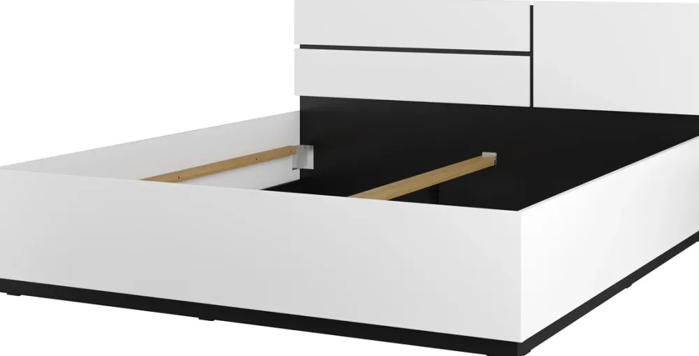 - Łóżko nie posiada w zestawie stelaża ani materaca, dzięki czemu można dopasować mebel do własnych potrzeb i preferencji. Dedykowany stelaż i materac znajduje się w sekcji Kup Razem.