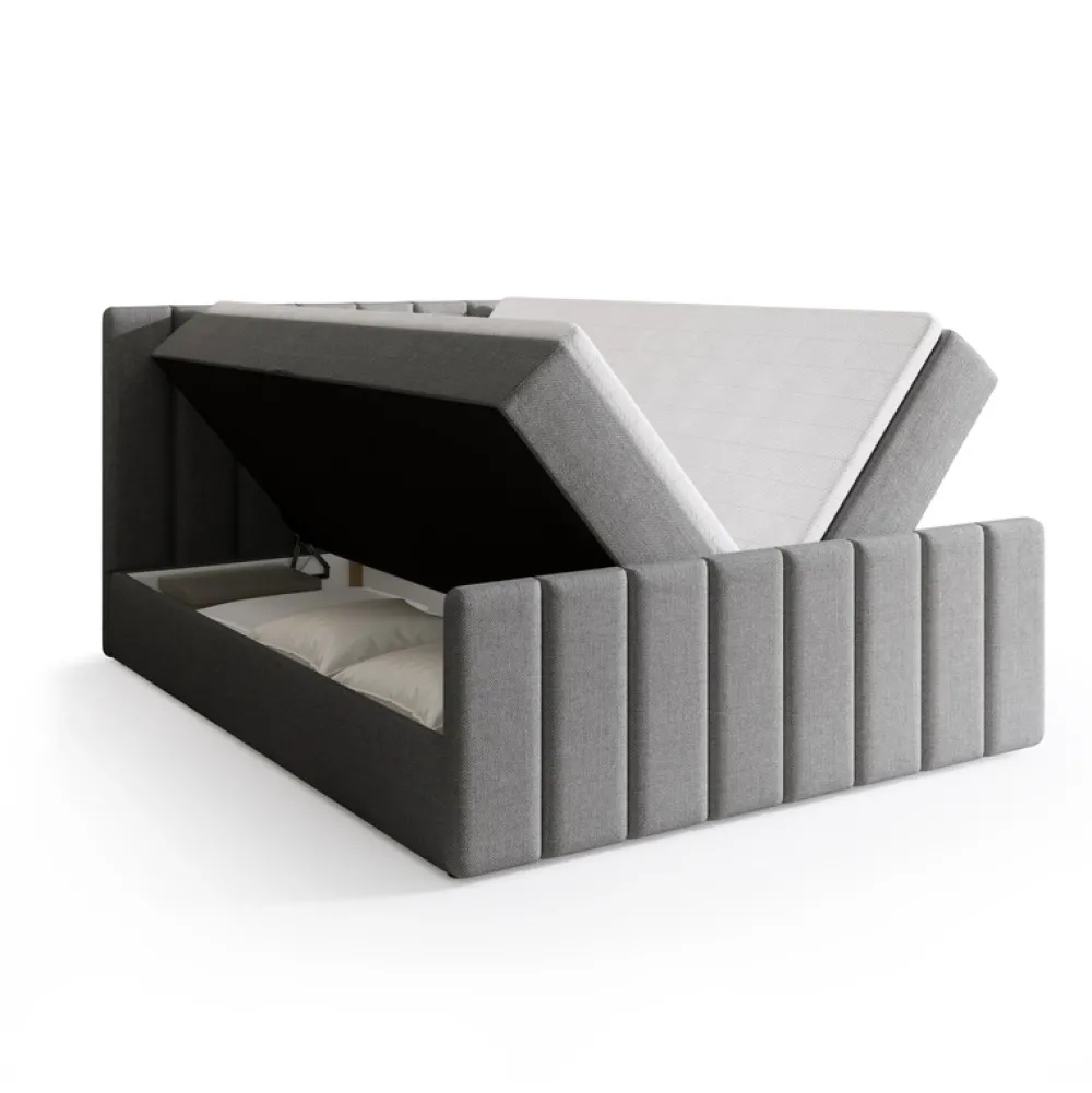 - Łóżko posiada dwa głębokie pojemniki na pościel. Za dostęp do pojemników odpowiada automat sprężynowy, który przejmuje na siebie część obciążenia, przez co znacząco ułatwia rozkładanie.