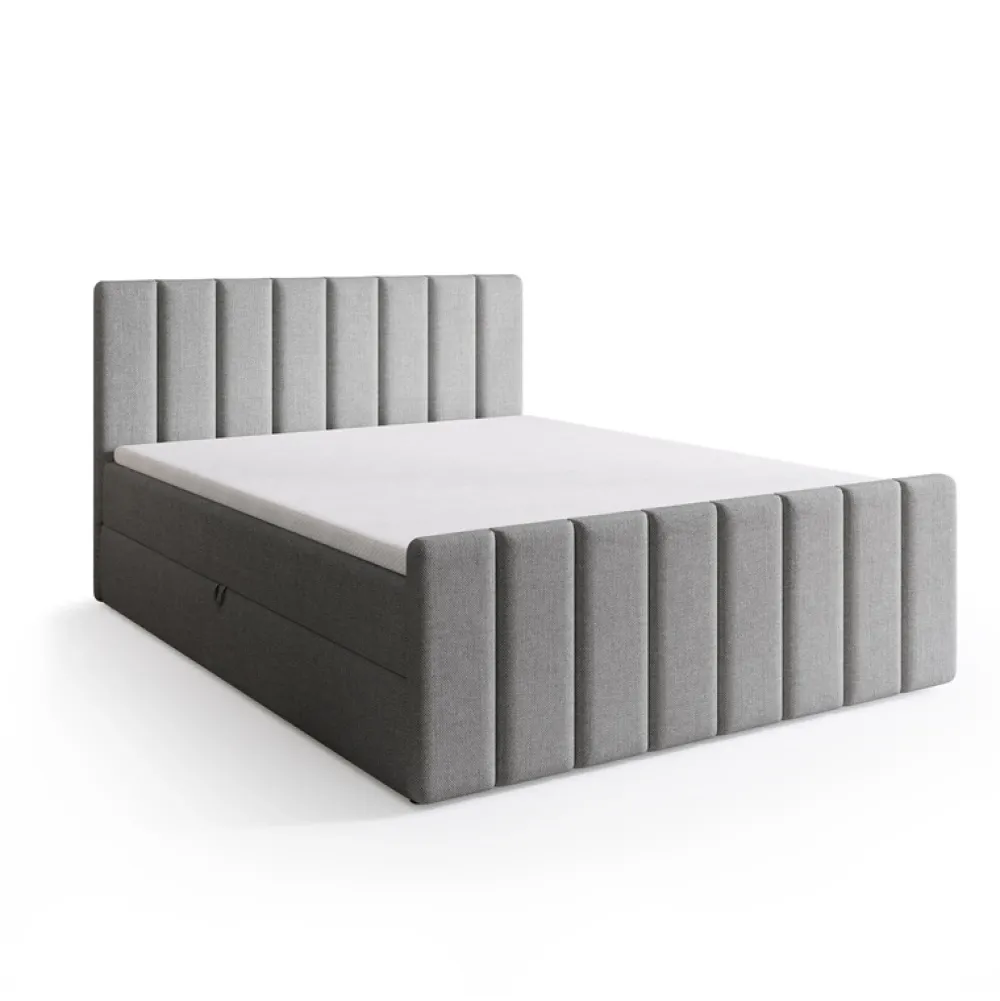 - Łóżko kontynentalne 160×200 cm do sypialni DENVER o wymiarach posiada praktyczny pojemnik na pościel, do którego dostęp ułatwia mechanizm otwierania wspomagany sprężynami. W zestawie znajduje się materac o średniej twardości, oparty na sprężynach bonell.