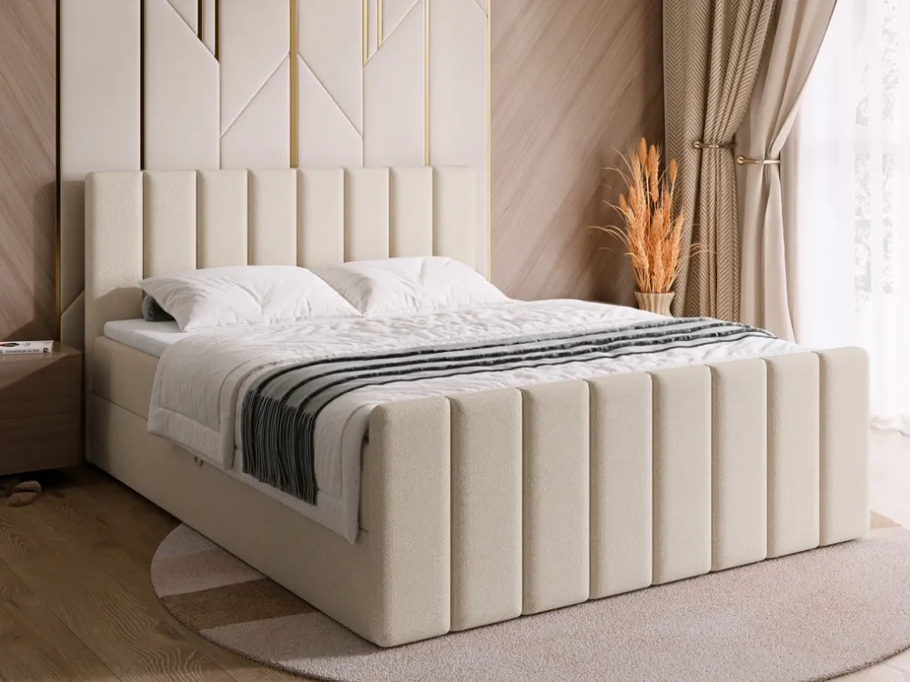 - Łóżko kontynentalne DENVER o wymiarach 160×200 cm posiada praktyczny pojemnik na pościel, do którego dostęp ułatwia mechanizm otwierania wspomagany sprężynami. W zestawie znajduje się materac o średniej twardości, oparty na sprężynach bonell.