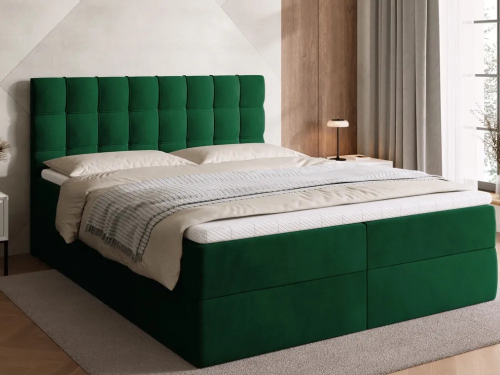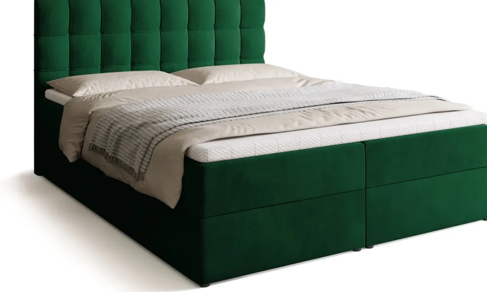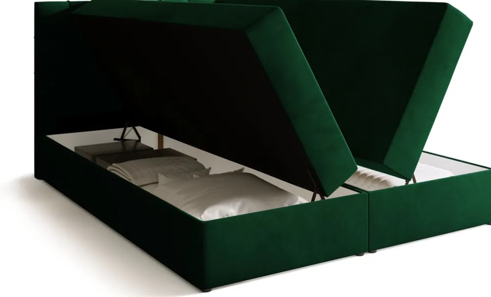 Łóżko kontynentalne do sypialni posiada dwa pojemniki na pościel, które pozwalają na przechowanie pościeli i nie tylko. Automat sprężynowy wspomaga otwieranie pojemnika, co czyni dostęp do jego zawartości prostym i komfortowym.