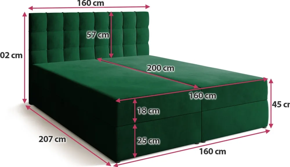 - Łóżko kontynentalne 160×200 DETROIT wykończono welurową tkaniną Kronos, która charakteryzuje się efektem pisania. Materac łózka wykonano na bazie sprężyn bonell oraz pianki T-30. Za dostęp do pojemnika odpowiada sprężynowy automat rozkładania.
