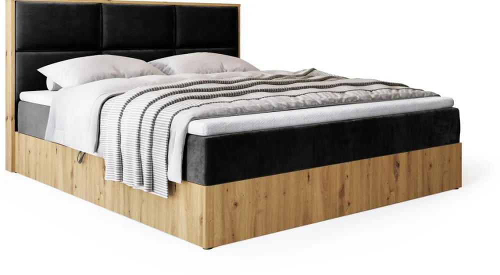 - Łóżko kontynentalne 160×200 cm LOFT zostało wyposażone w komfortowy materac na bazie sprężyn bonell o wysokości 17 cm. Pod powierzchnią spania znajdują się dwa pojemniki na pościel, za dostęp do pojemnika odpowiada automat sprężynowy.