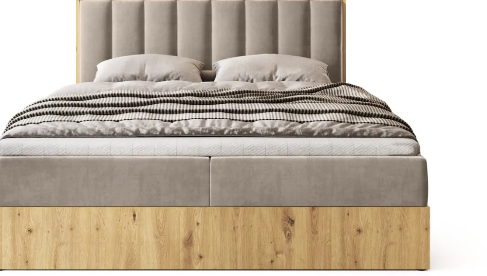 Nie można pominąć aspektu wizualnego – welurowe tapicerowane pasy pionowe na zagłówku dodają łóżku LOFT niepowtarzalnego charakteru. Miękki w dotyku welur, połączony z surową stylistyką loftu, tworzy harmonijną całość, która będzie się wyróżniać w każdej sypialni. To właśnie te detale sprawiają, że łóżko LOFT jest nie tylko meblem do spania, ale prawdziwym elementem dekoracyjnym, zdolnym odmienić charakter całego pomieszczenia.