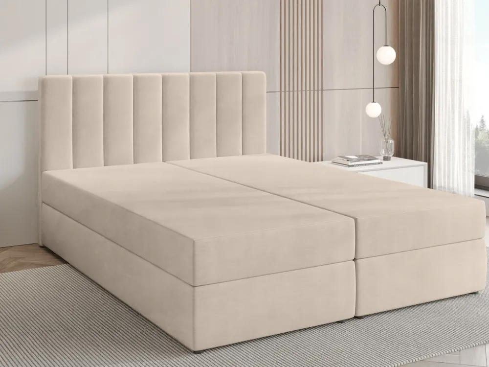 Łóżko kontynentalne 180×200 cm DENVER to propozycja dla osób poszukujących komfortowego, oraz nowoczesnego łóżka. Łóżko kontynentalne z pojemnikiem zostało wyposażone w tapicerowany zagłówek we wzorze szerokich słupków, które doskonale zdobią pomieszczenie swą prostotą.