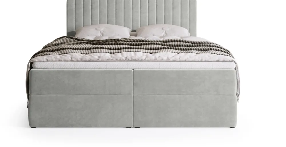 Dodatkowym atutem łóżka kontynentalnego do sypialni są dwa głębokie pojemniki na pościel, wyposażone w sprężynowy automat rozkładania, który umożliwia łatwe i szybkie dostęp do schowanych przedmiotów bez zbędnego wysiłku. To rozwiązanie jest nie tylko wygodne, ale również pomaga w utrzymaniu porządku i organizacji w sypialni.