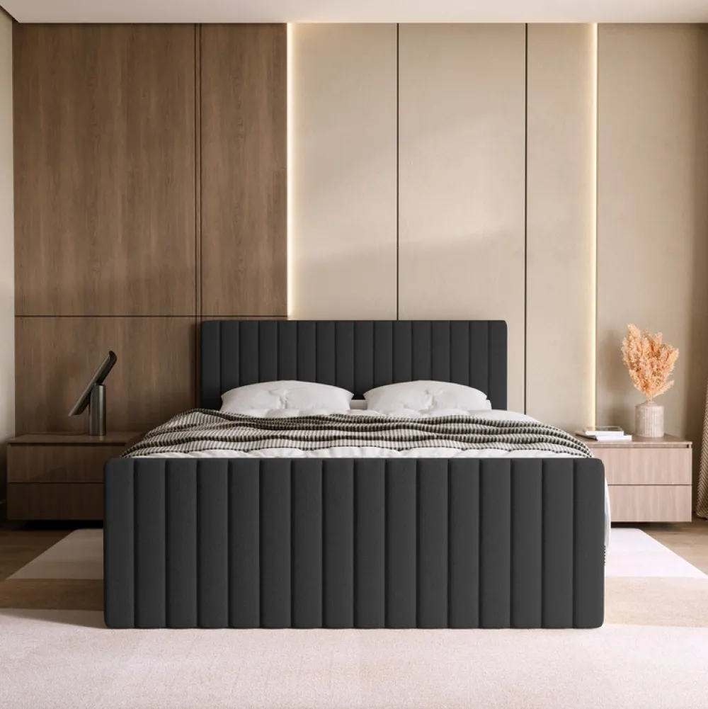 - Szare łóżko kontynentalne DREAM DUO 180×200 cm z zagłówkiem, dwoma pojemnikami na pościel i materacem bonell z pianką T30. Tapicerowane tkaniną Cosmic 101 z powłoką hydrofobową. Komfort, styl i praktyczność w jednym meblu do sypialni.