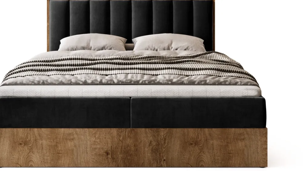 Nie można pominąć aspektu wizualnego – welurowe tapicerowane pasy pionowe na zagłówku dodają łóżku LOFT niepowtarzalnego charakteru. Miękki w dotyku welur, połączony z surową stylistyką loftu, tworzy harmonijną całość, która będzie się wyróżniać w każdej sypialni. To właśnie te detale sprawiają, że łóżko LOFT jest nie tylko meblem do spania, ale prawdziwym elementem dekoracyjnym, zdolnym odmienić charakter całego pomieszczenia.