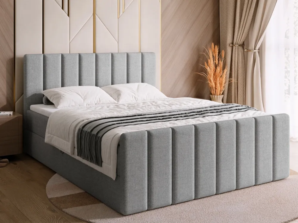 Łóżko kontynentalne 180×200 cm DENVER DUO to idealne rozwiązanie dla osób, które szukają połączenia nowoczesnego designu z codziennym komfortem. Model ten wyróżnia się podwójnym zagłówkiem o dekoracyjnym układzie szerokich, pionowych paneli – dzięki niemu całość prezentuje się niezwykle elegancko i harmonijnie w każdej sypialni.