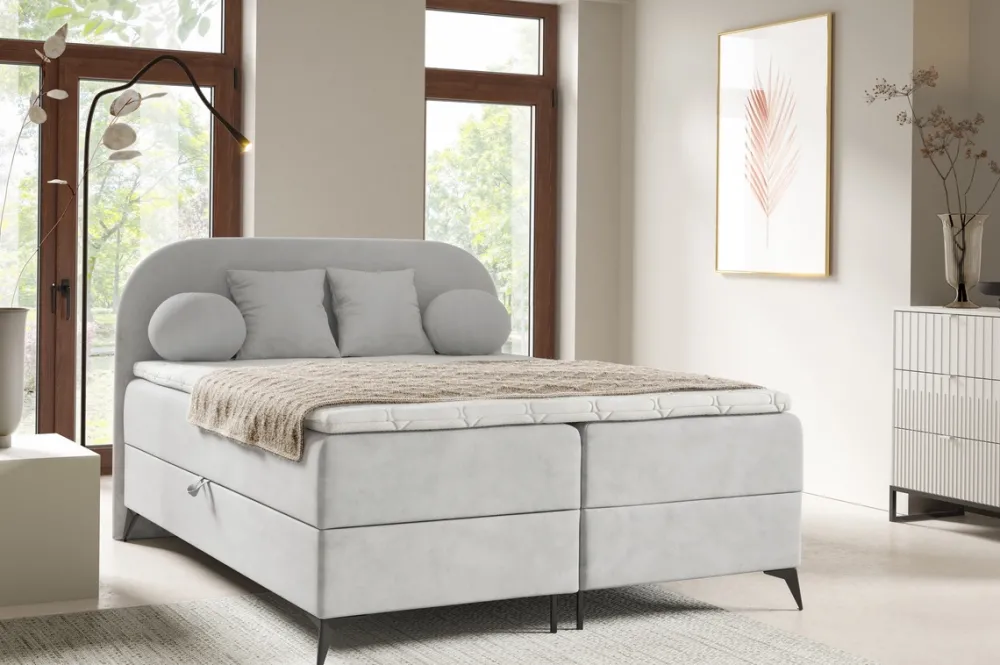 Łóżka Małżeńskie|Łóżka Ze Stelażem>BROMARKT Szare łóżko dwuosobowe 180×200 cm kontynentalne do sypialni SERENO