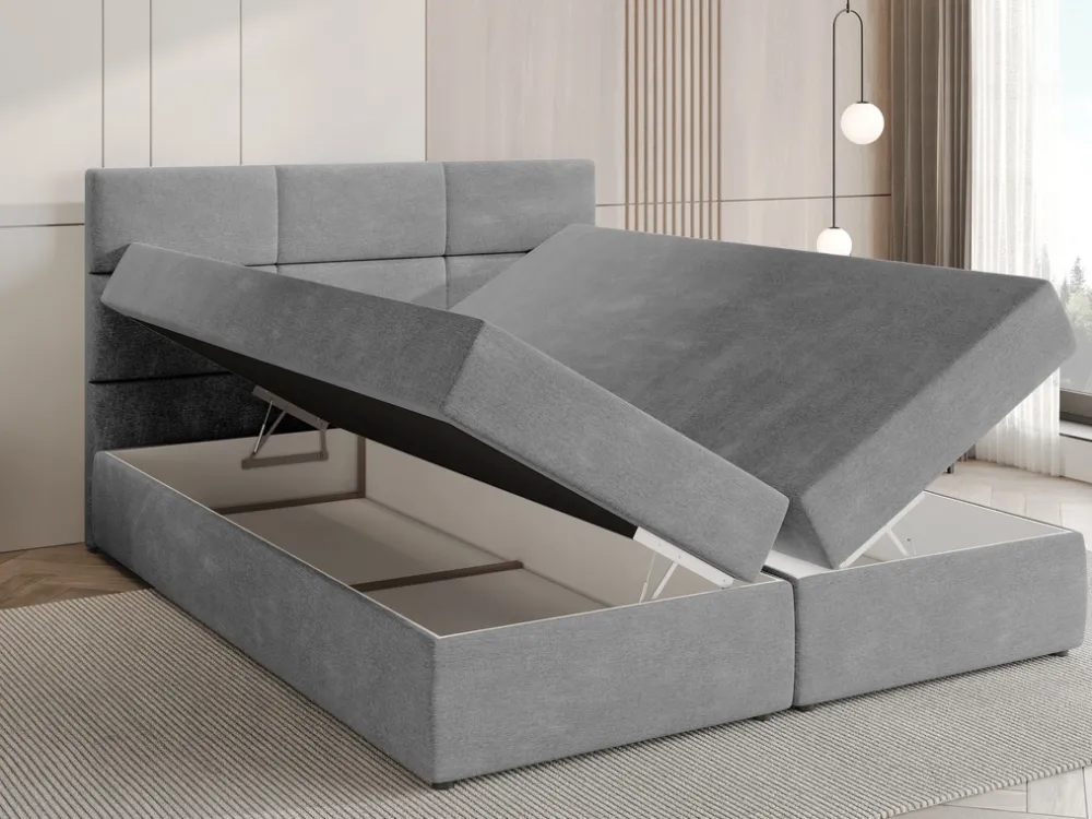 Dwa pojemniki na pościel otwierane są za pomocą sprężynowego automatu rozkładania, który przejmuje na siebie część ciężaru materaca, dzięki czemu dostęp do zawartości pojemników na pościel jest prosty oraz przyjemny.