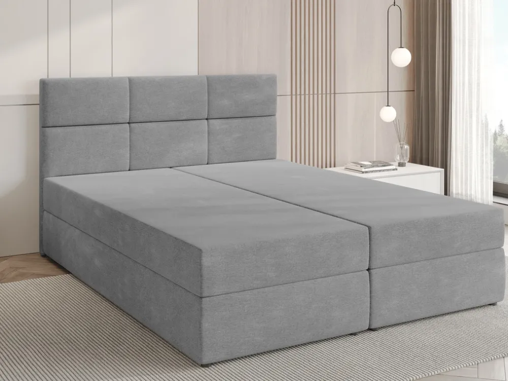 Łóżko kontynentalne 160×200 cm BOSTON to idealne połączenie nowoczesności i komfortu dla osób, które cenią sobie wygodę oraz solidne i estetyczne wykonanie. Welurowe łóżko kontynentalne do sypialni posiada zagłówek z ozdobnymi przeszyciami tworzącymi sześć prostokątów.