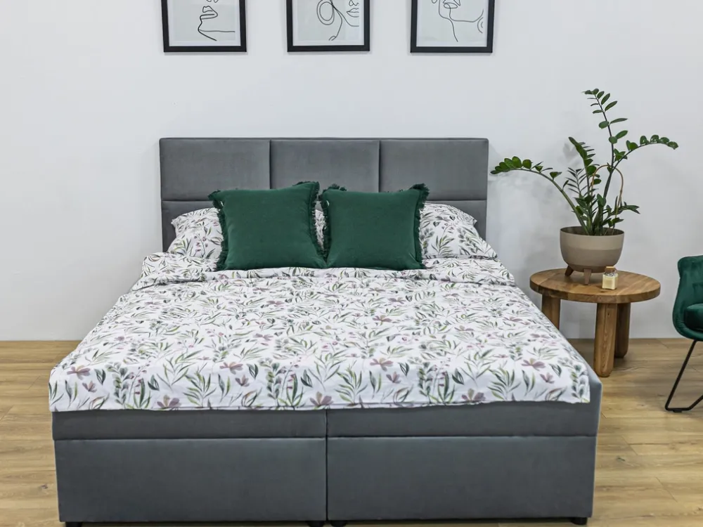 - Łóżko kontynentalne 160×200 BOSTON posiada średnio twardy materac na bazie sprężyn bonell oraz grubej warstwy pianki T30. Za dostęp do pojemnika na pościel odpowiada automat sprężynowy, który wspomaga rozkładanie i przejmuje na siebie ciężar.