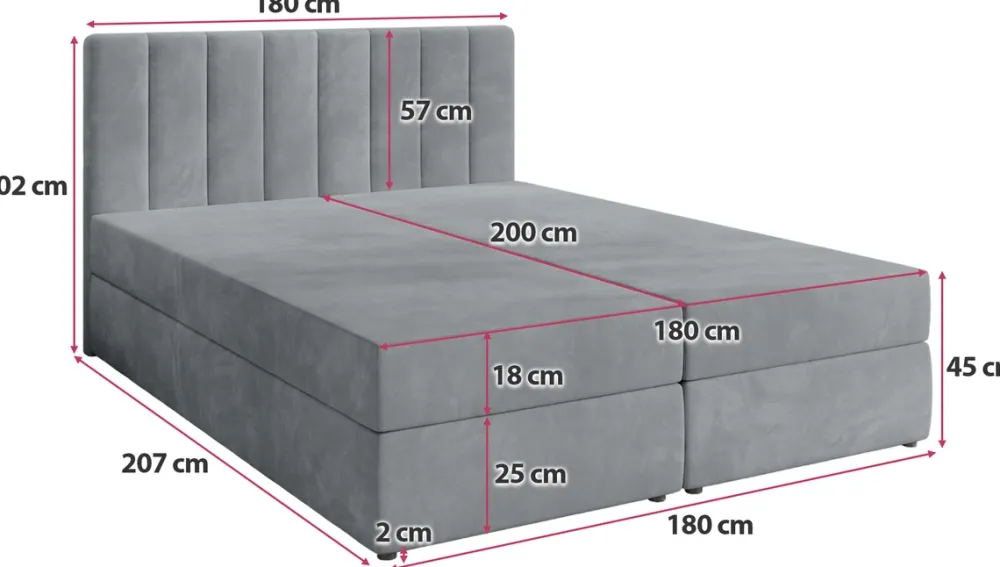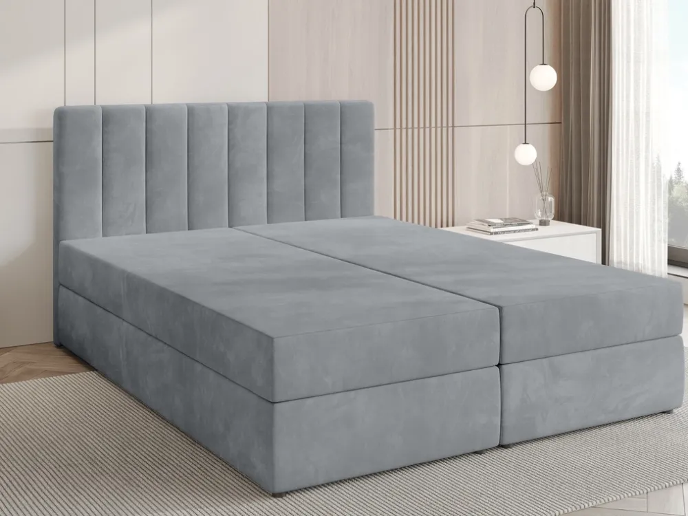 Łóżko kontynentalne 180×200 cm DENVER to propozycja dla osób poszukujących komfortowego, oraz nowoczesnego łóżka. Łóżko kontynentalne z pojemnikiem zostało wyposażone w tapicerowany zagłówek we wzorze szerokich słupków, które doskonale zdobią pomieszczenie swą prostotą.