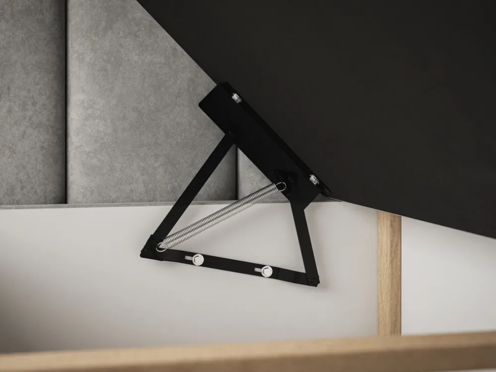 Z myślą o maksymalnej wygodzie użytkowników, łóżko wyposażone jest również w sprężynowy automat rozkładania, który umożliwia łatwe i bezproblemowe dostęp do pojemnika na pościel. Ten innowacyjny mechanizm sprawia, że codzienne użytkowanie łóżka staje się czystą przyjemnością.