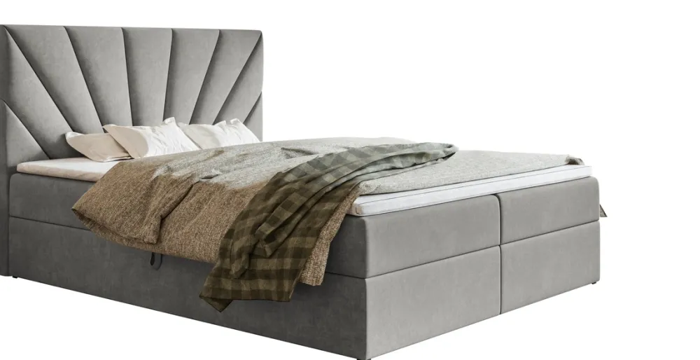 - Łóżko kontynentalne 160×200 cm CELCO zostało wyposażone w materac ze sprężynami bonell, pod którym znajduje się pojemnik na pościel podzielony na dwie części. Łóżko dostępne jest w wielu atrakcyjnych wzorach oraz kolorach tkanin.