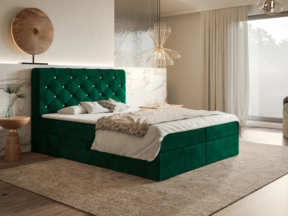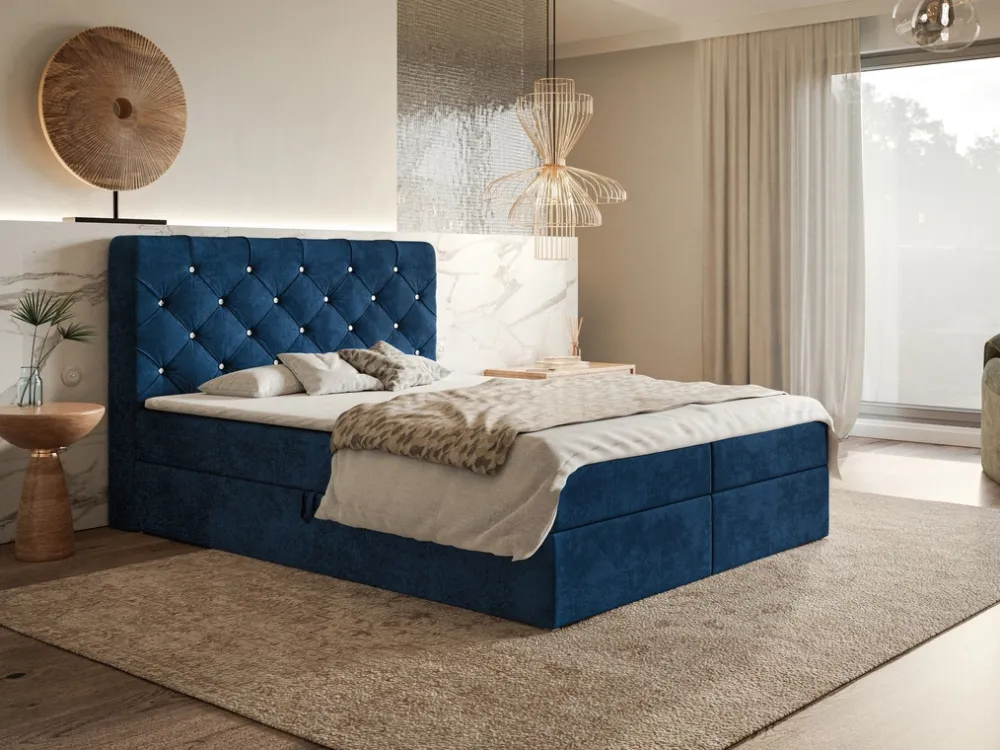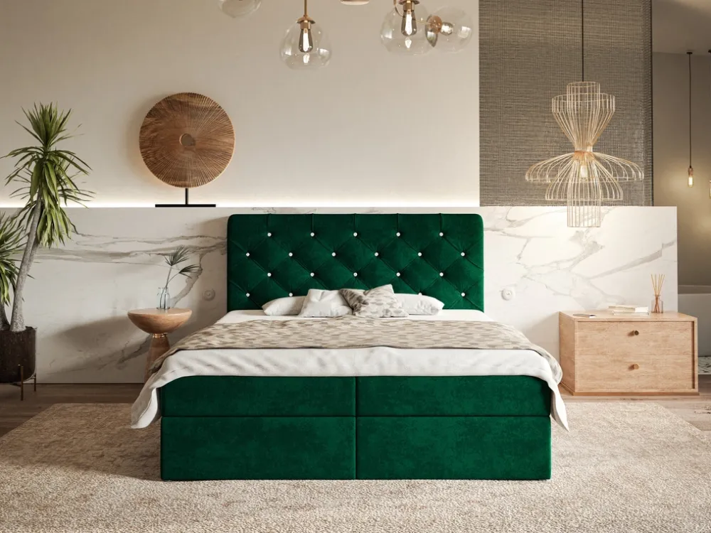 - Łóżko w standardzie wyposażone jest w materac o wysokości 19 cm oparty na sprężynach bonell. Które są odporne na odkształcenia oraz dobrze podpierają ciało podczas snu. Dodatkowo łóżko posiada możliwość doposażenia w sprężyny pocket, które zwiększają komfort snu.