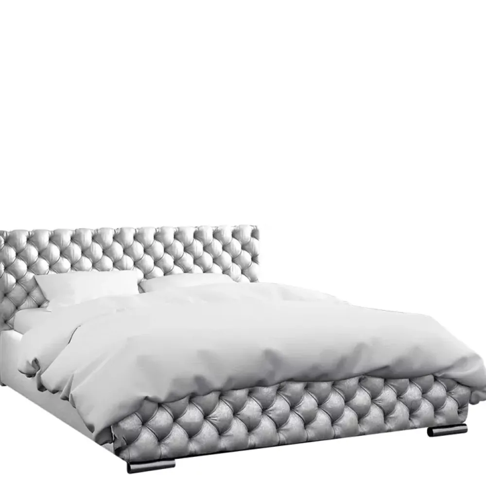 Łóżko do sypialni z głębokimi pikami na oparciu i przodzie łóżka