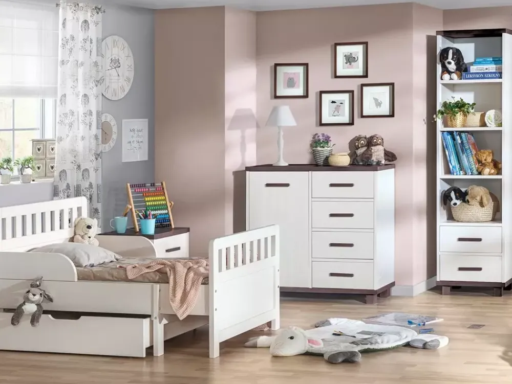 Nasze drewniane łóżko do pokoju dziecięcego to połączenie niezwykłego stylu, funkcjonalności i solidności. Daj swojemu dziecku przestrzeń, gdzie sen staje się magiczną przygodą, a poranek jest pełen energii i radości.