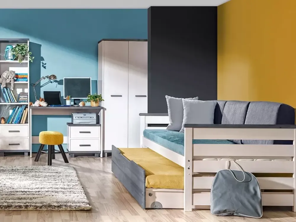 - Możliwość dołączenia szuflady w formie łóżka dolnego ze stelażem po naciśnięciu „Dopasuj i kup”.