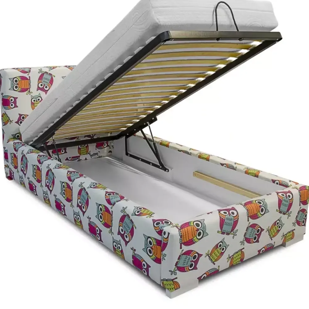 - Tapicerowane łóżko dziecięce dostępne w wersji z pojemnikiem na pościel. Powierzchnia spania 90×200. Dostępny w wielu wariantach kolorystycznych. Całkowita długość to 222 cm, szerokość 100 cm.