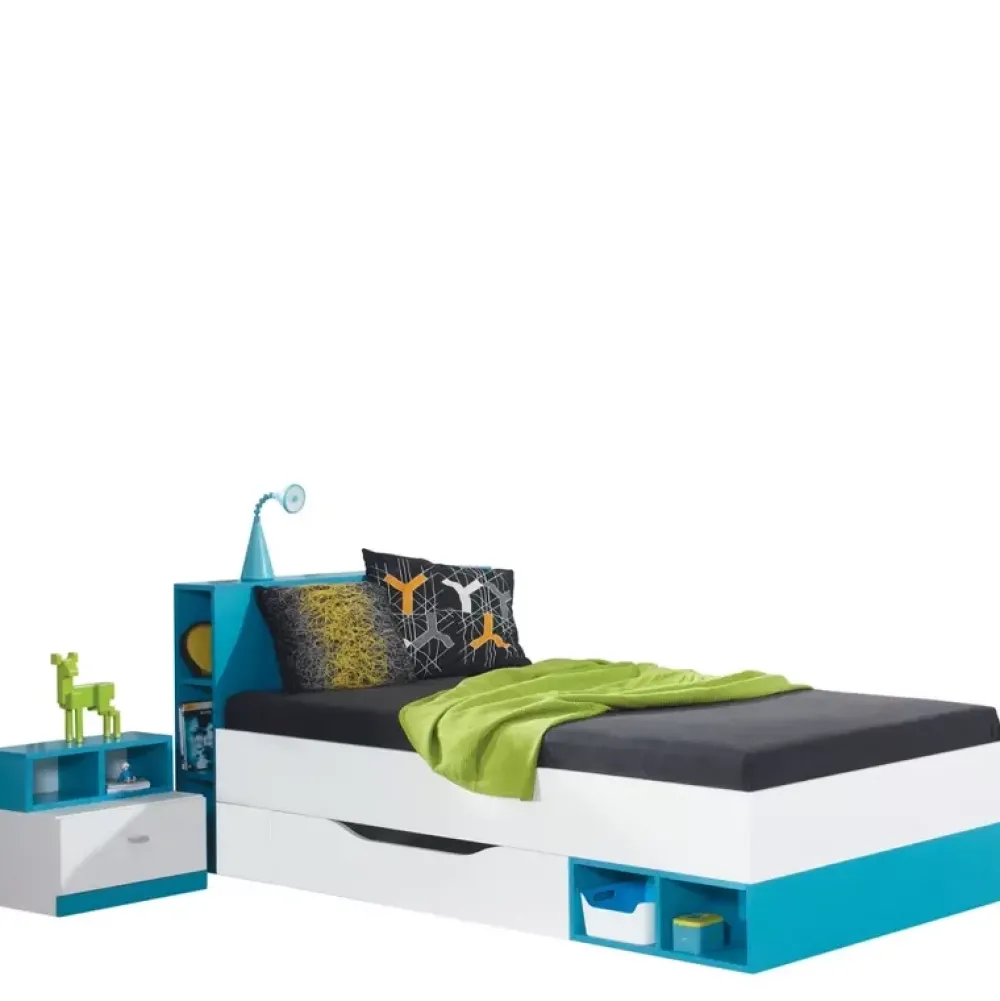 Łóżko z kolekcji MALVES poprzez swoją stylistykę oraz praktyczne zastosowania i przemyślaną konstrukcję świetnie się sprawdza we współczesnych pokojach młodzieżowych. Łóżko zostało wyposażone w szufladę u dołu, w której możesz umieścić swoje tekstylia aby zyskać do nich szybki dostęp. Dodatkowo łózko posiada półki dekoracyjne, na których możesz umieścić swoje akcesoria, którymi nadasz pomieszczeniu własnych, niepowtarzalnych akcentów. Powierzchnia na materac, jaki możesz umieścić w łóżku wynosi 90cm x 200cm co pozwala na komfortowy wypoczynek dla jednej osoby.
