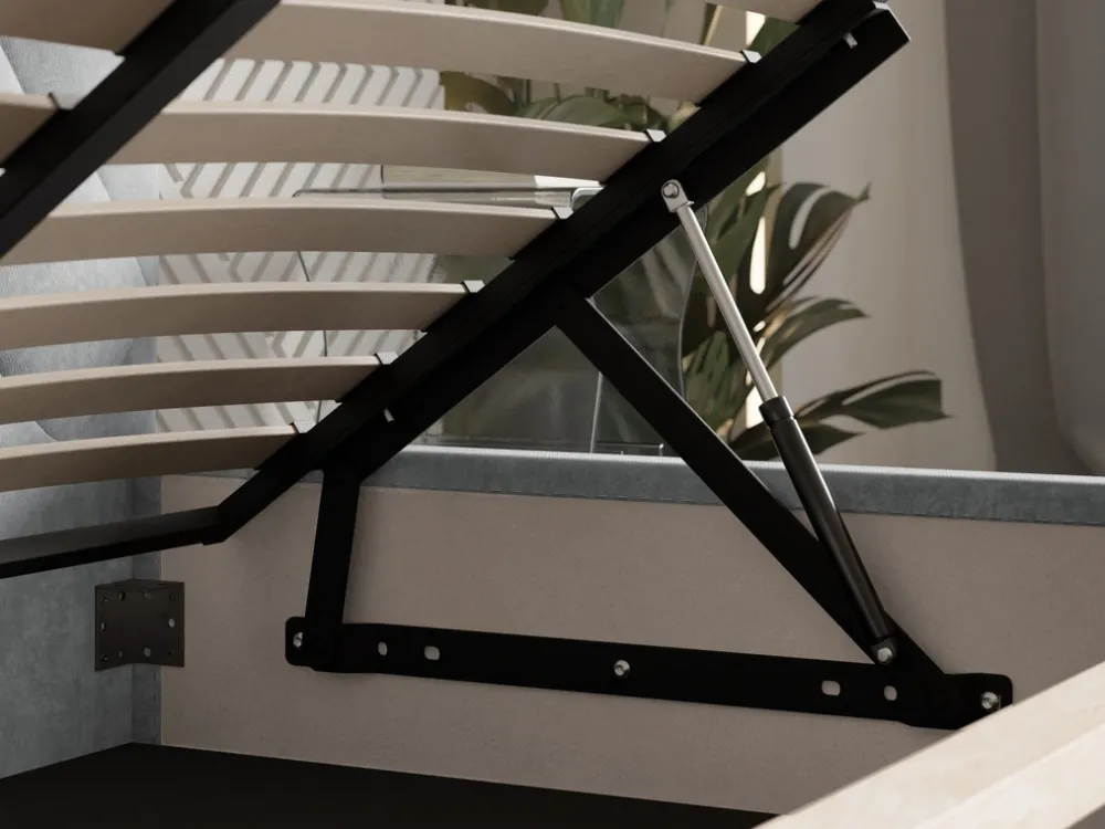 - Opcjonalnie stelaż drewniany za dopłata zmienić można na wersję z ramą wykonaną z metalu, podnoszoną na siłownikach gazowych. W tej wersji stelaż składa się z 36 brzozowych listew sprężynujących. Uchwyt służący do podnoszenia stelaża w kolorze losowym, element niewidoczny. Obciążenie maksymalne to 200 kg.