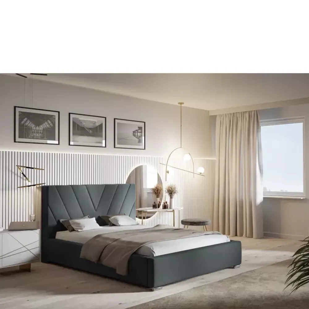 - Tył zagłowia wykończony jest czarnym wigofilem (tkanina techniczna), za dopłatą możliwe jest wykonanie w takiej tkaninie jak całe łóżko.