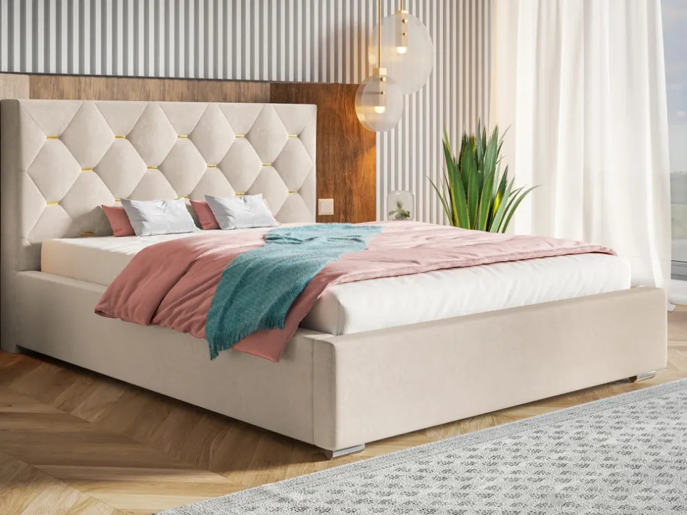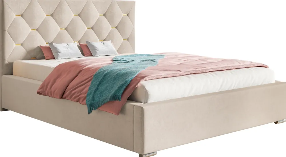 - Łóżko do sypialni z symetrycznym wzorem, dostępne w kilkudziesięciu wariantach kolorystycznych oraz wielu gatunkach tkanin. Modyfikacje wysokości zagłówka, rodzaju stelaża, koloru nóżek znajdą państwo w konfiguratorze, „Dopasuj i kup”.