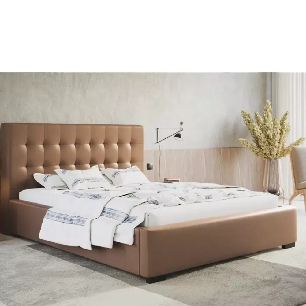 - Opcjonalnie stelaż drewniany za dopłata zmienić można na wersję z ramą wykonaną z metalu, podnoszoną na siłownikach gazowych. W tej wersji stelaż składa się z 36 brzozowych listew sprężynujących. Uchwyt służący do podnoszenia stelaża w kolorze losowym, element niewidoczny. Obciążenie maksymalne to 200 kg.