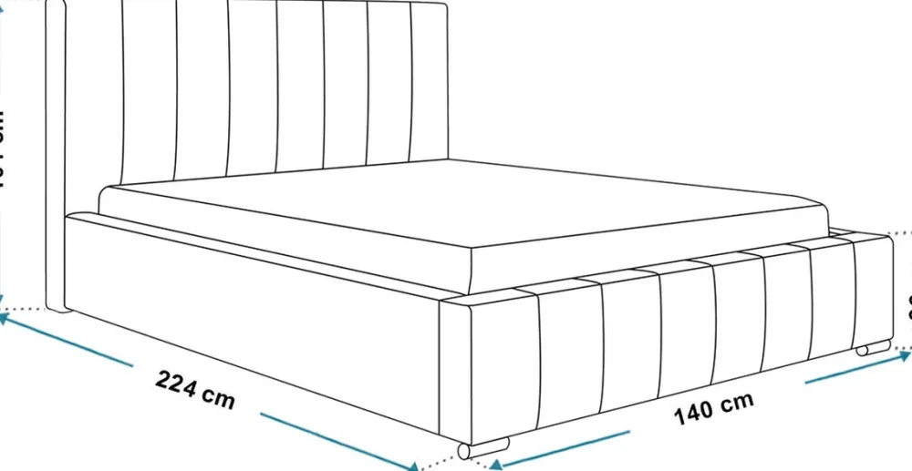 Łóżko oparte jest na nóżkach o wysokości 4 cm. Nadaje to meblowi lekkości. Niewysokie nóżki sprawiają, że łóżko wygląda nowocześnie i subtelnie, nie przytłaczając w przestrzeni sypialni.