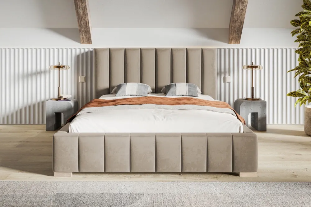 Zagłówek łóżka przyciąga uwagę swoim wykończeniem – jest przeszyty ozdobnym wzorem, który dodaje łóżku charakteru i elegancji. Może stanowić piękny akcent dekoracyjny w sypialni, a także zapewnia wygodne oparcie podczas czytania książki czy oglądania telewizji w łóżku.