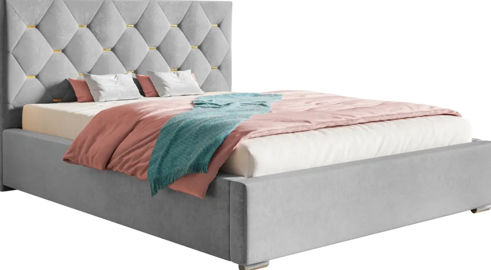 - Łóżko do sypialni z symetrycznym wzorem, dostępne w kilkudziesięciu wariantach kolorystycznych oraz wielu gatunkach tkanin. Modyfikacje wysokości zagłówka, rodzaju stelaża, koloru nóżek znajdą państwo w konfiguratorze, „Dopasuj i kup”.