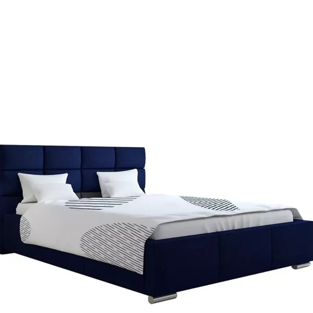 - Łóżko do nowoczesnej sypialni z prostym wzorem na wysokim zagłówku. Wyposażone w duży pojemnik na pościel umieszczony pod stelażem. W konfiguratorze znajdą państwo dostępne tkaniny, opcję zmiany stelaża, zmianę wysokości zagłówka oraz kolor nóżek.