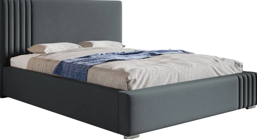 - Zagłówek razem z czołem łóżka posiadają ozdobne przeszycia, nadające łóżku nowoczesny styl.