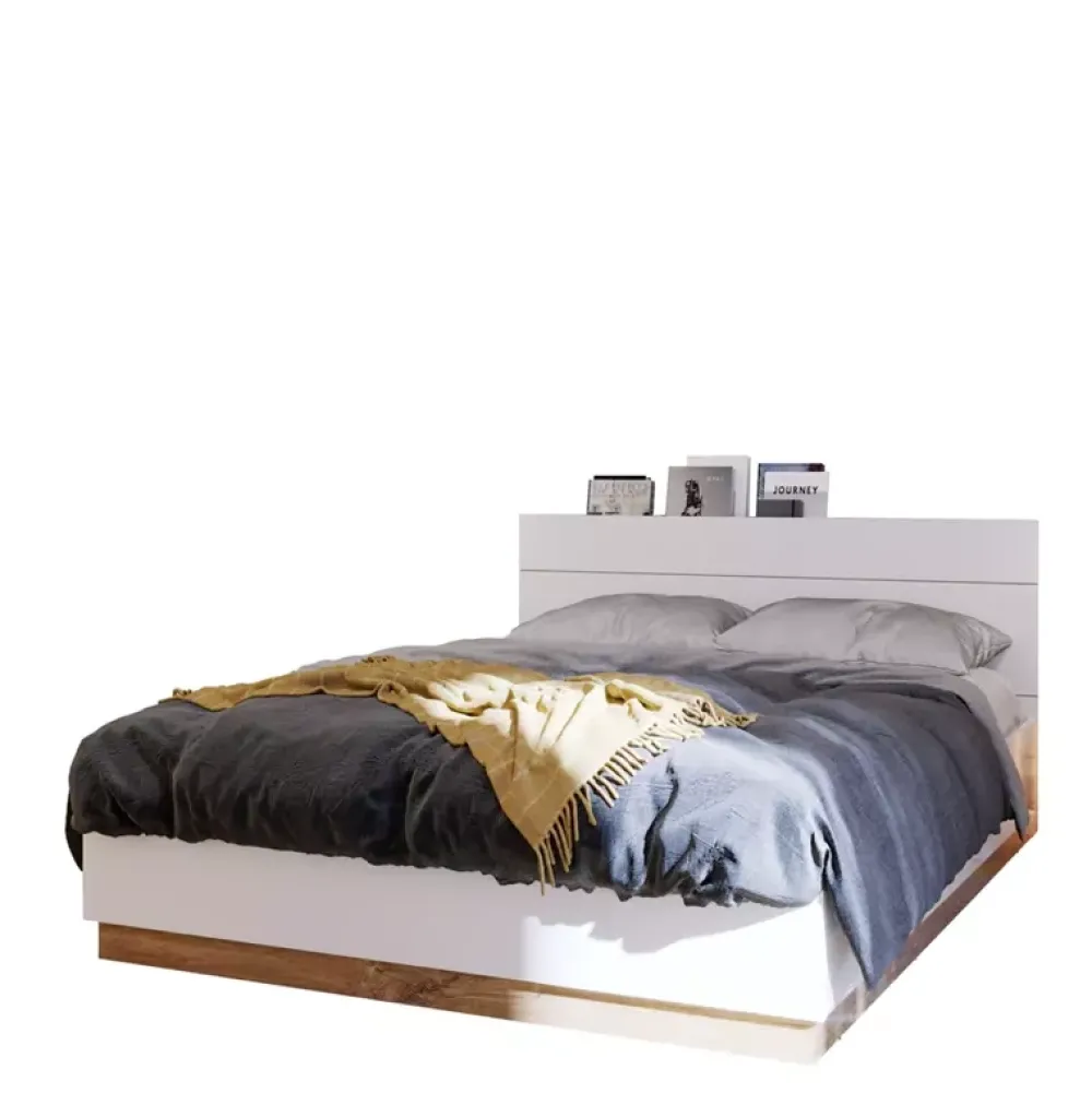 Łóżko ze stelażem do sypialni posiada również zagłówek ze subtelnym oświetleniem LED, które będzie znakomitym towarzyszem podczas wieczornego czytania książki oraz spędzenia czasu.