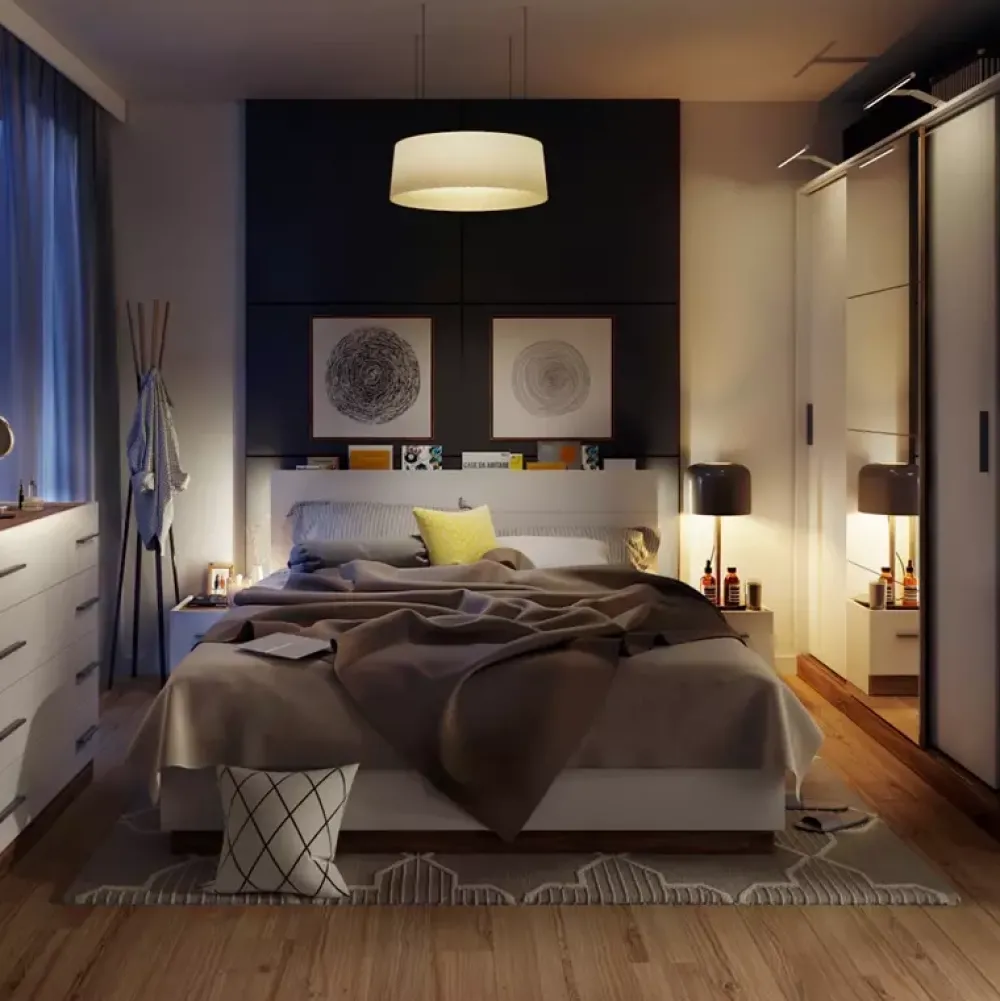 - Zagłówek może pełnić rolę subtelnej półki.