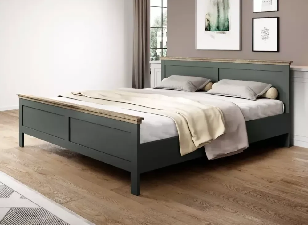Stylowe łóżko dwuosobowe pasujące do materaca o wymiarach 160×200 cm, łóżko bez pojemnika na pościel.