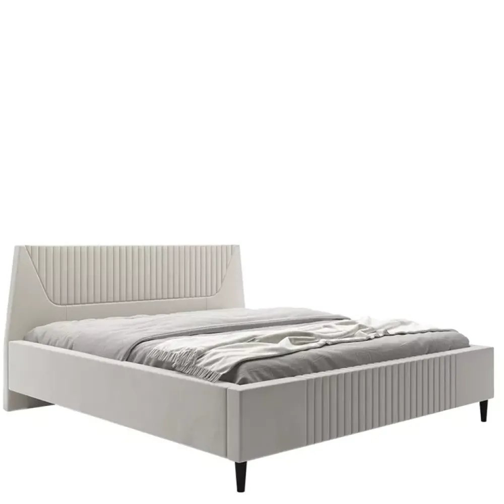 Łóżko tapicerowane ANUBIS jest propozycją dla osób poszukujących nowocześnie wyglądającego łóżka, które dzięki szerokiej gamie dostępnych tkanin jest bardzo uniwersalne aranżacyjnie. Łóżko zostało wyposażone w pojemnik na pościel, dzięki któremu zyskasz szybki oraz prosty dostęp do najpotrzebniejszych akcesoriów sypialnianych, oraz wysokie nóżki, które ułatwiają sprzątanie oraz umożliwiają swobodną pracę popularnych odkurzaczy samojezdnych. Dodatkowo łóżko posiada modernistycznie zaprojektowany zagłówek oraz front ze stylowymi przeszyciami.