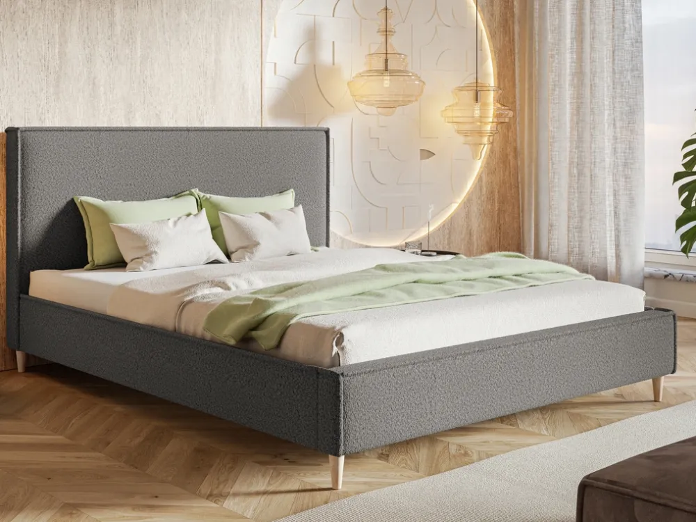 Łóżko tapicerowane o wymiarach 160×200 cm EDAN to elegancki i komfortowy mebel sypialniany, który łączy w sobie funkcjonalność i estetykę. Stelaż tego łóżka składa się z 28 elastycznych listew wykonanych z brzozy, co zapewnia odpowiednie wsparcie dla materaca oraz dostosowuje się do ciężaru ciała, oferując optymalny komfort snu. Wysokie nóżki łóżka nie tylko nadają mu lekkości i nowoczesnego charakteru, ale również ułatwiają utrzymanie czystości pod meblem, zapewniając łatwy dostęp do przestrzeni pod łóżkiem.