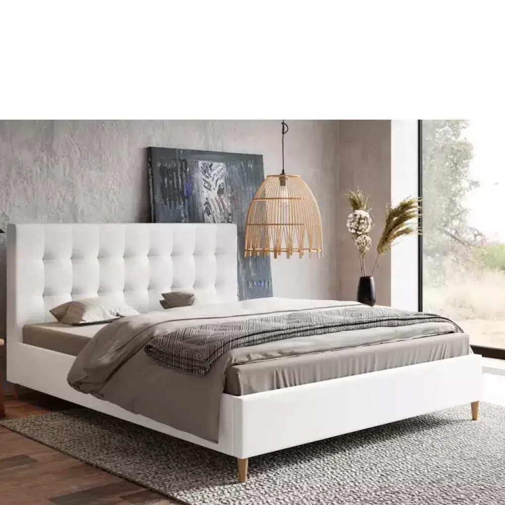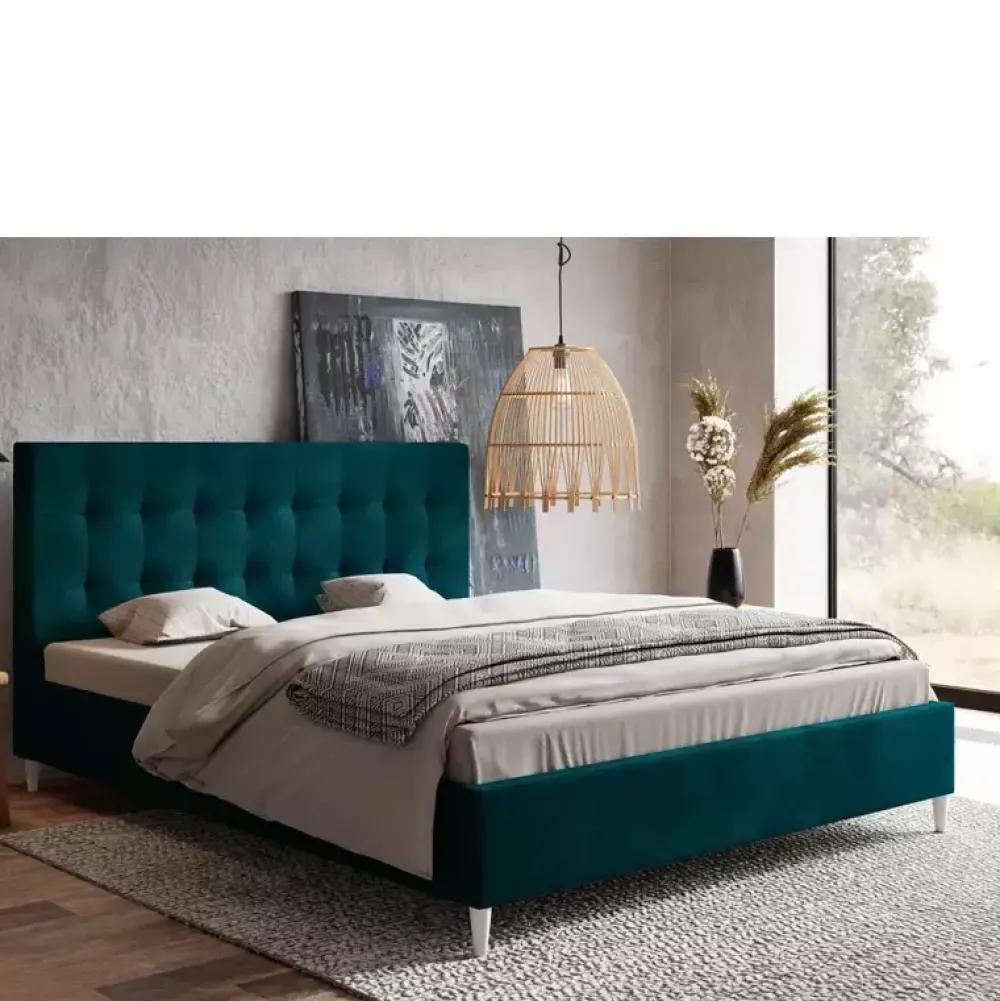 - Łóżko podwójne z prostym zagłówkiem udekorowanym, klasycznym wzorem dwurzędowych pików. W konfiguratorze znajdą państwo kilka opcji dopasowania go do swojej sypialni, między innymi rodzaj tkaniny i jej kolor, wysokość zagłówka, a także kolor nóżek.